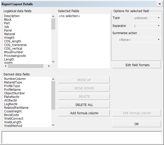 Edit field formats – Set the fill character, column width, alignment and other properties for the selected fields. See Field Format Editor for detailed information.