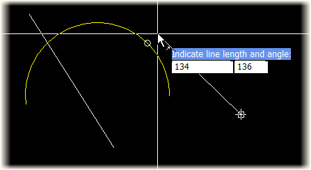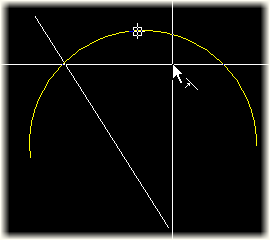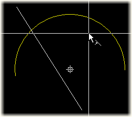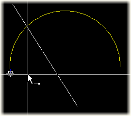 Move the cursor to the intersection point of the two indicated lines or arcs.
