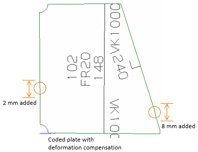 In the example below, the start compensation is 2 mm and the end compensation is 8 mm. Because the values are different, the shape of plate is slightly deformed.