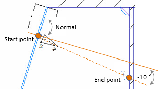 The end point is at the opposite relation, at the intersection of the line drawn from the start point at the given angle to the normal of the first relation.