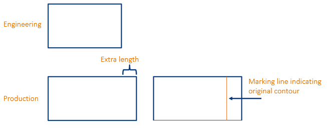 Note: If the extra length is negative, the original contour is not marked. The original contour will only be marked if the plate or shell plate becomes longer by adding extra length, and not when the plate becomes longer due to beveling.
