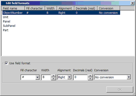If formats can be defined for a certain setting, the Edit formats button is shown. Clicking it opens the field format editor where the field format codes can be created.