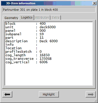 To date and time – The format is defined by the setting Extra > Customize > 3D-Item Information > Settings > Date/Time Format.