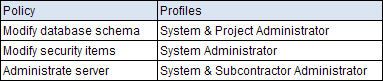 This policy enables defining user profiles, security policies, and object type specific permissions. |