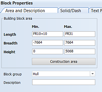 Construction area – Inserts the default values of the construction block area, based on the construction currently present in the block.