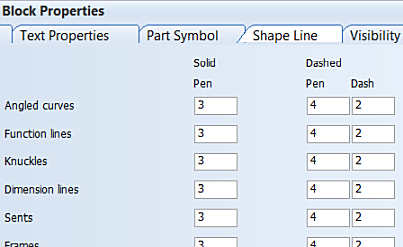 There are two presentation categories for each hull shape line type: Solid and Dashed. You can set the pen and dash numbers that the block will use for representing each type of hull shape line.