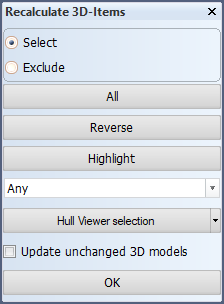 Recalculate 3D-items. Select from the following functions: