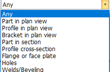 You can use the drop-down menu to limit your selection to a specific construction items. Only items of the selected type can be selected.