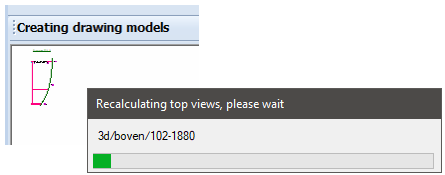 Click OK. The system shows the progress of the recalculation process in a progress bar and briefly displays the view being updated minimized in the top left corner of the graphical window.