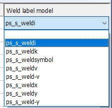 Note: The system applies weld label models for weld line labels automatically as defined here. In situations for which there is no definition, the default weld label model weldsymbol is used. The default model will be also be used if the defined weld label model file is not found in <project>\norms\cvar\weld.