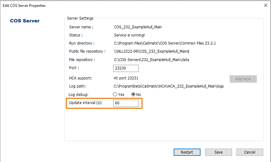 By default the log_path setting is empty and the file is stored locally in %ProgramData%\Cadmatic\HCA\[hca name]\logs. The log path cannot be a mapped network drive, because it runs in a different logon context.