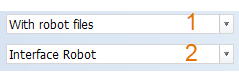 - In the second drop-down menu the type of the robot data can be selected. If there are no robot types specified, the second drop-down menu gets the value None, and the value in the first drop-down menu will automatically be Without robot files.