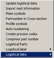 With this function it is possible to change logistical information of one or more selected part. There are three menus involved to control and change these information. The Logistical selection menu, the Logistical menu and the Select default text menu.