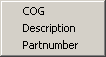 The names of the logistical data menus are set in the System Management application, in Logistical Data Menu. This way it is possible to control the variation of the logistical fields and specify this in a menu. In our example we have three predefinedlogistical data menus: COG, Description and Partnumber.