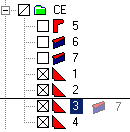 Renaming branches only affects the checked leaves. In the example below, you can see that changing the name of the branch (subpanel) CE into BR affects all its children except the unchecked parts 5, 6 and 7. Renaming a single leave is always applied whether it is checked or not.