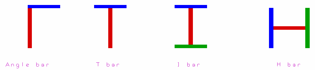 - Angle bars and T-bars are listed in two lines, the body and flange in separate lines.