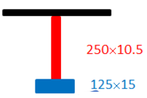 The profile name consists of the full name, and the breath and the thickness of the individual part between parentheses. The image below shows an example of a T-bar with a 250X10.5 body and a 125X15 flange.