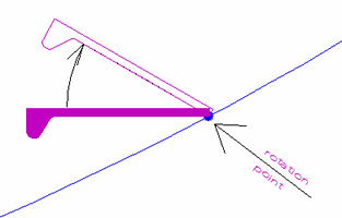 If a shell frame is rotated, the calculation is always done at the molded side of the shell frame. This means that the shift of working plane is ignored. The rotation point is always around the base line of the profile at the molded side.