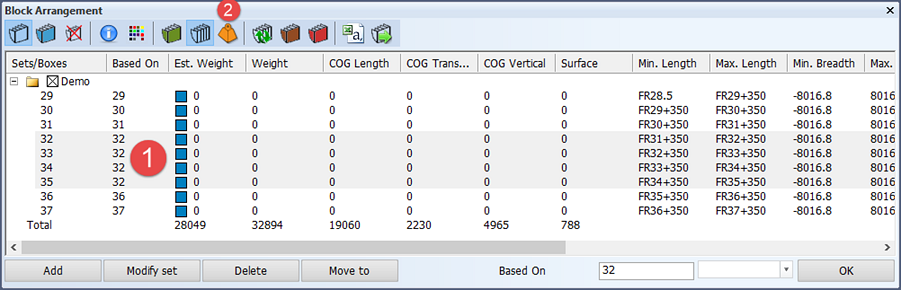 (2). A progress bar appears, indicating the overall progress of the calculations.Once a calculation has been made, the weight and center of gravity are shown. The Total line contains the total of the last calculation action.