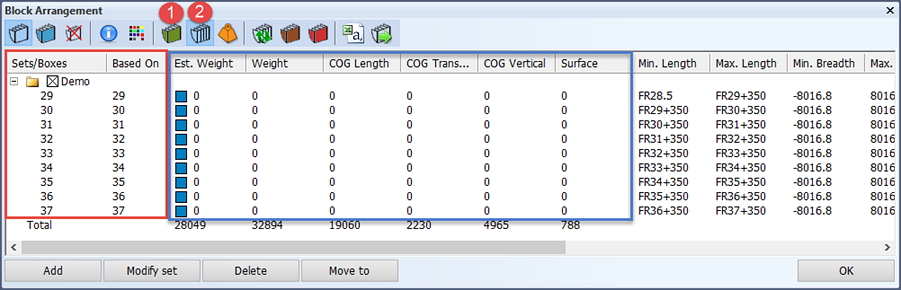 Expand the set for which you want to perform weight and COG calculations.