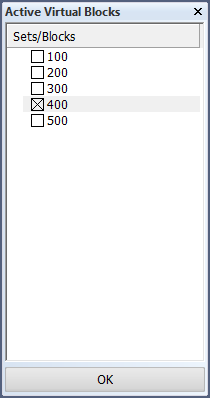 , and select the virtual block(s) for the solid weights. Block 400 is selected here as the block containing the virtual parts for calculations