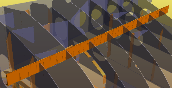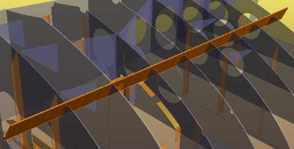 So far you have seen how to create profiles in orthogonal directions, for example when they run parallel to lines such as waterlines, verticals or frame lines. It is also possible to create a shell frame that runs along a longitudinal line that is not orthogonal, for instance a knuckle line or a seam line. This can be done with use of the application 3D Show.