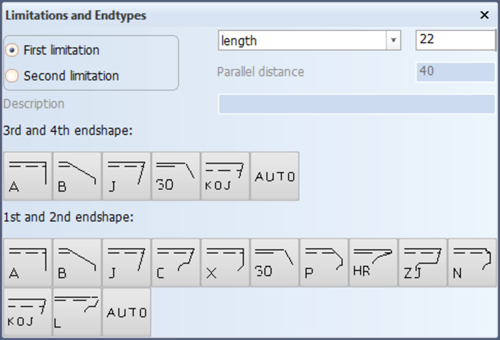 You are going to specify frame 22 as a fixed length for the first limitation with a parallel distance of 40 and then proceed to choose endshape 'A'. For the second limitation, specify frame 31 with a parallel distance of 40 and also the endshape 'A'.