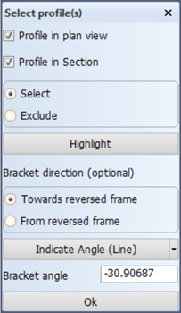 Proceed to draw a selection box around both the shell frame and the arbitrary profile in the panel Select profile(s). After that, click the button Indicate Angle (Line) and then indicate the 2D line segment.