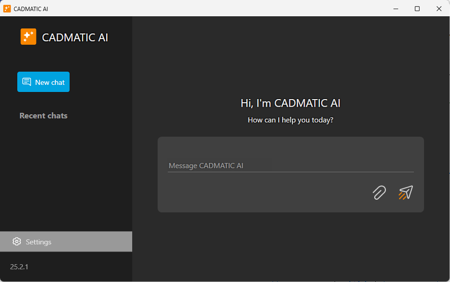 Multiple CADMATIC AI sessions can be open at the same time. To open a another session, click the New chat button.
