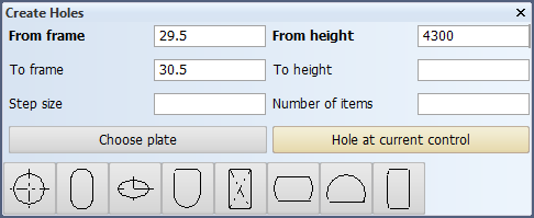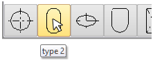 Select the hole type. The five leftmost hole types are standard holes. From left to right these are types 1, 2, 3, 5 and 6 (type 4 is not used), and named in the image below. The rest of the hole types are user-defined holes (the type numbers can range from 8 to 99).