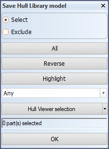 After you have selected the parts, the Save Hull Library model dialog opens.