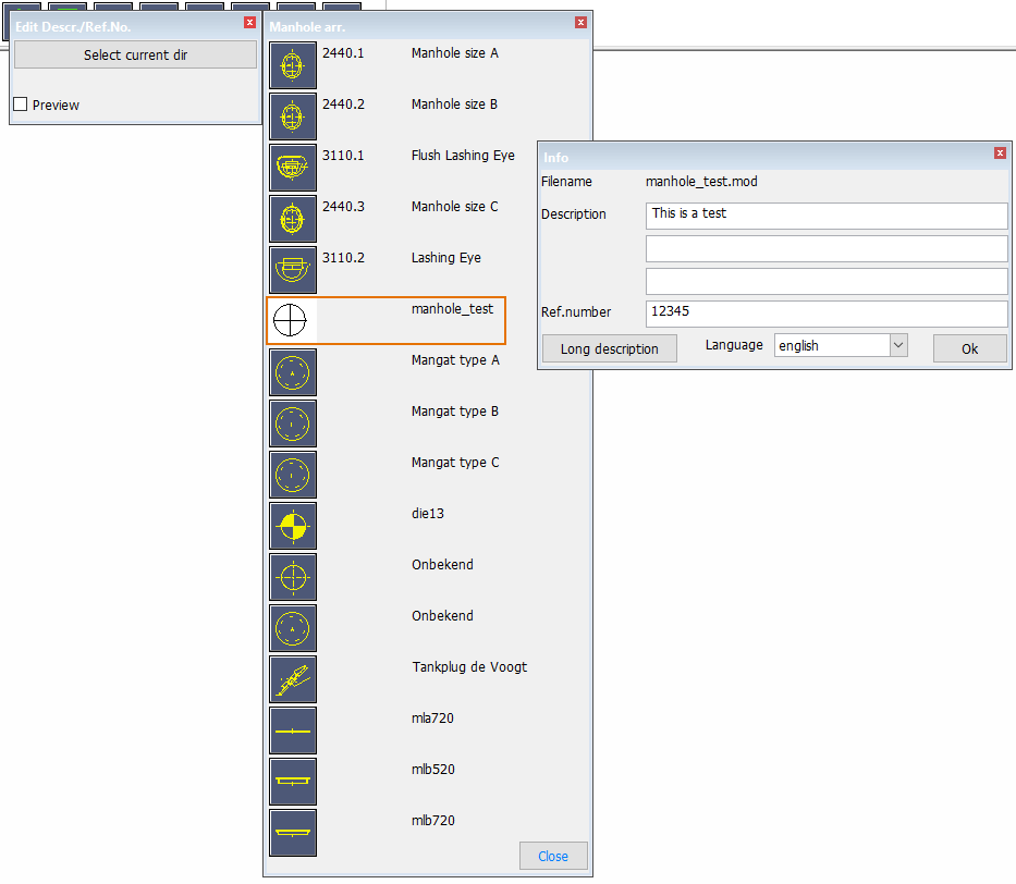 When clicking on Select current dir you can change the description of the directory you are in. In this case you will change the manhole description.