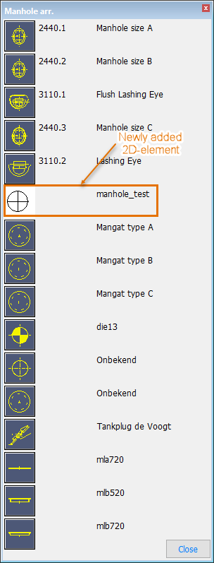 Click the icon in which group you want to add the 2D symbol. In this example, the Manhole arr. toolbar icon.