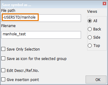 The file path has been automatically chosen earlier when clicking the Manhole arr. toolbar icon. The file path, thus also the group in which this is placed, can be modified in the dialog if necessary.