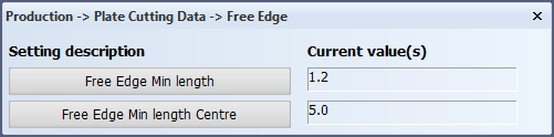 Set the threshold values for including markings on the DXF file for parts' free edges, that is, edges that do not connect with any other part. A free edge is defined as and edge that does not have a bevel. The threshold values define the minimum length that a part edge must have to get a marking.