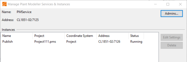 Select the service, and click OK. The Manage Plant Modeller Services & Instances dialog opens.