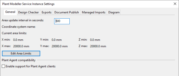 Select the service instance, and click Edit Settings. Alternatively, double-click the service instance. The Plant Modeller Service Instance Settings dialog opens.