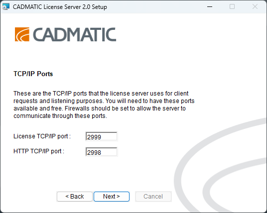 • License TCP/IP port – Specify the port to use for serving license requests. The default port is 2999.