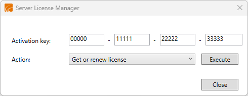 9. In the Server License Manager dialog, enter the activation key.