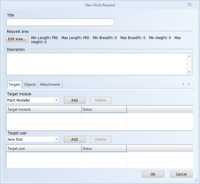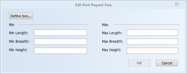 Select this to open the Edit Work Request Area dialog where you can define the min–max limits of the work request area. If all values are zero, the area has not been set.