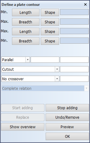 - The next boundary of the plate is a line with a parallel distance of 3950 from the centerline. Select the Min. Breadth button and enter 3950 as value in the entry field;