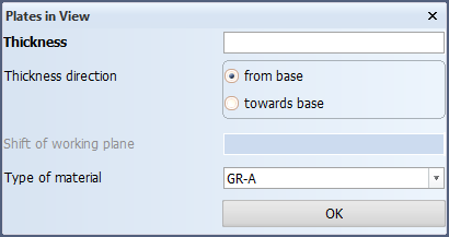 After selecting this function, you enter the values for Thickness and Thickness direction in panel Plates in View.