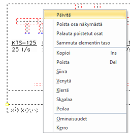 Poistetut osat saa palautettua tarvittaessa kontekstivalikon Palauta poistetut osat -toiminnolla.