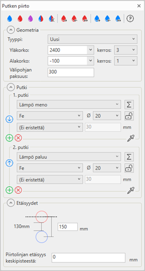 Layout-sovellus > Lattialämmitys-välilehti > Piirrä-ryhmä > Nousu |