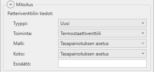 LVK-patterille voidaan valita patteriventtiilin malli ja koko, tai ne voidaan jättää tasapainotuksen asetuksen mukaisiksi.