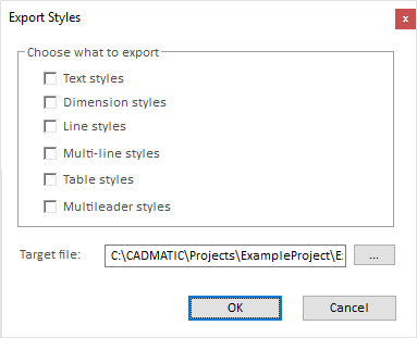 Export styles – Allows exporting styles into a DWG or DXF file. The Export Styles dialog opens for specifying which styles to export.