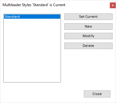 Insert/modify – Opens the Multileader Styles dialog for defining multileader styles.