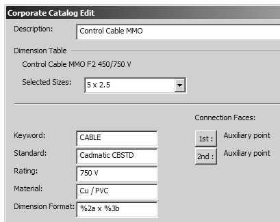 Note: Define, for example, the diameter and the number of cores as Key dimensions, and do not change the quantity types or the names of parameters.
