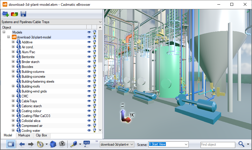 CADMATIC eBrowser is a design review and collaboration tool for construction and revamping projects in plant and marine industries. You can use it to open the 3D model of a complex design such as a power plant or a passenger ship, and then move around anywhere in the model, inspecting the individual objects, checking dimensions between entities, and adding markups to comment on the design. In collaborative design projects you can load partial models received from different designers and save the result as a single merged model. In revamping and retrofitting projects you can combine 3D model views with 3D scans of an existing building or vessel to see how the old and the new fit together.