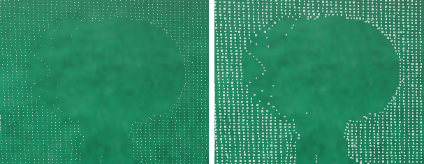 In the picture below, the left side displays the point cloud visualized with points, and the right side displays splats.